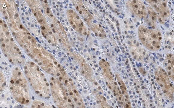 Immunohistochemistry (Paraffin) Analysis: A 1:100 dilution from a representative lot detected TAZ in human kidney tissue sections.