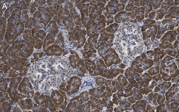 Immunohistochemistry (Paraffin) Analysis: A 1:100 dilution from a representative lot detected eIF2A in human pancreas tissue sections.